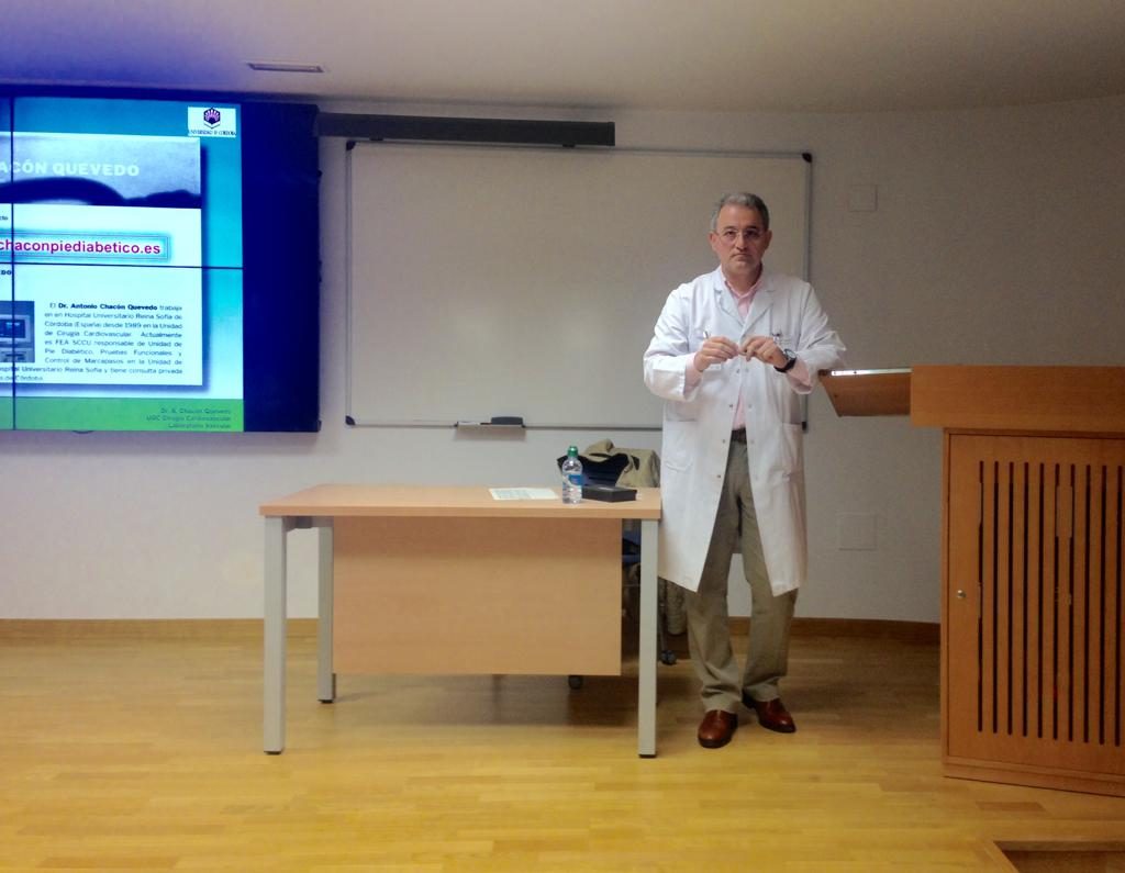 El Dr. Antonio Chacón Quevedo trabaja en en Hospital Universitario Reina Sofía de Córdoba (España) desde 1989 en la Unidad de Cirugía Cardiovascular. Actualmente es FEA SCCU responsable de Unidad de Pie Diabético, Pruebas Funcionales y Control de Marcapasos en la Unidad de Cirugía Cardiovascular del Hospital Universitario Reina Sofía y tiene consulta privada en el Hospital San Juan de Dios de Córdoba.